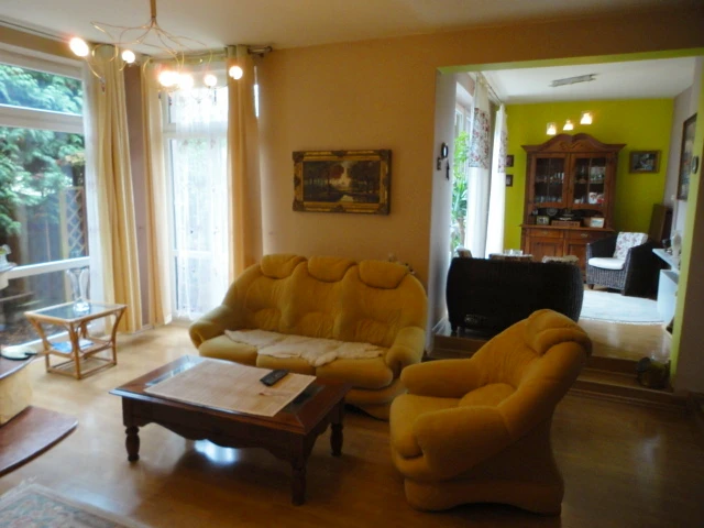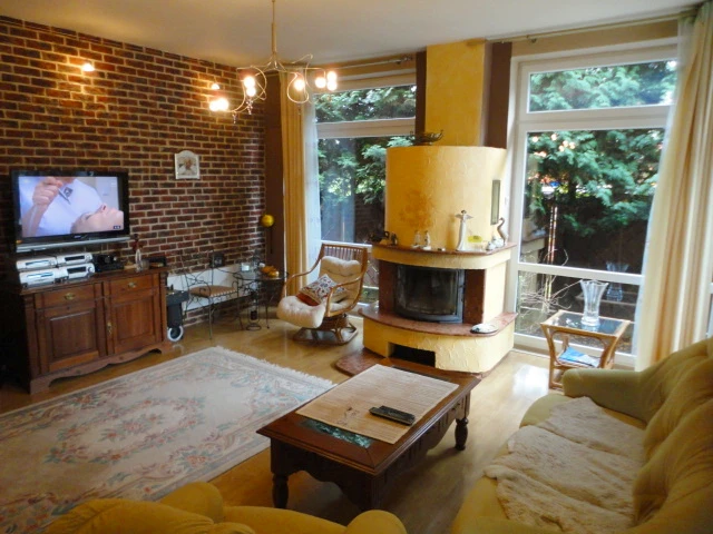 Das geräumige Erdgeschoss begeistert mit einem hellen Wohnzimmer (30 m²), ausgestattet mit einem gemütlichen Kamin und Zugang zur sonnigen Terrasse und dem liebevoll gestalteten Garten. Ebenfalls auf dieser Ebene befinden sich ein elegantes Arbeitszimmer oder Bibliothek (17,5 m²), ein separates Esszimmer (9 m²), eine komfortable Küche (16 m²) sowie ein Badezimmer (5 m²) und ein einladender Eingangsbereich.