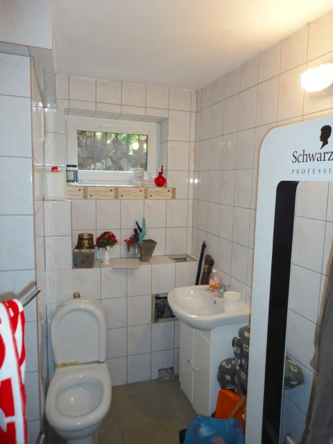Badezimmerausstattung: Badewanne, Dusche, WC, Waschbecken