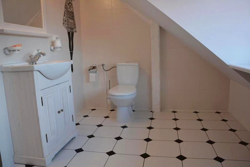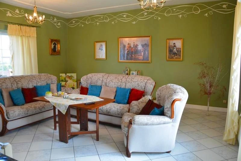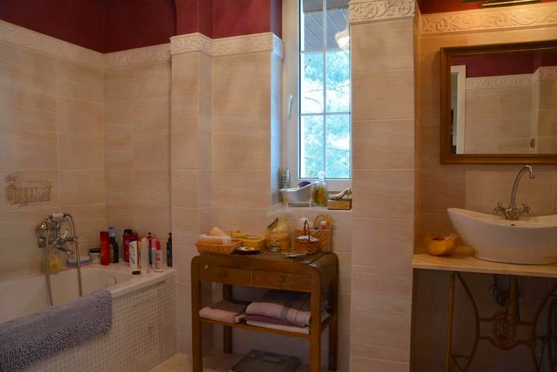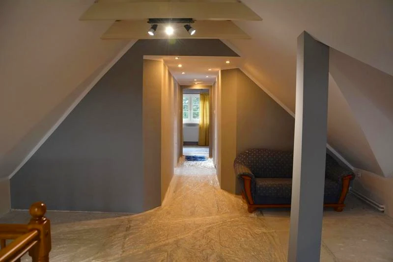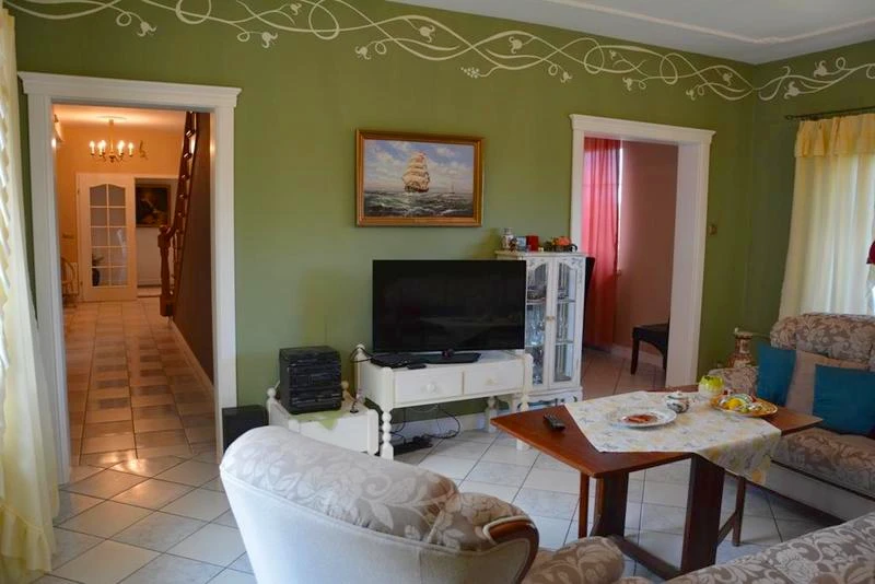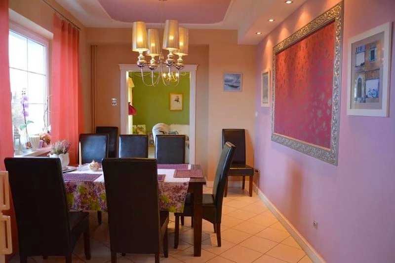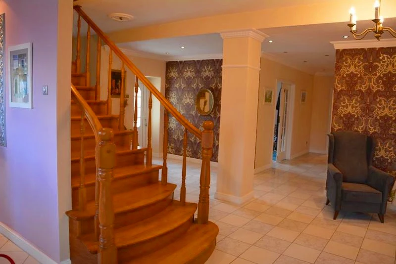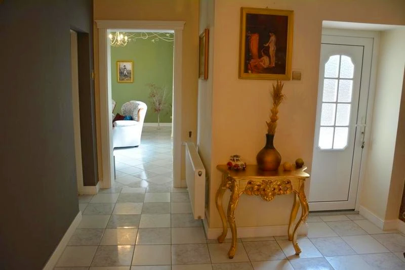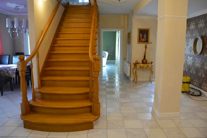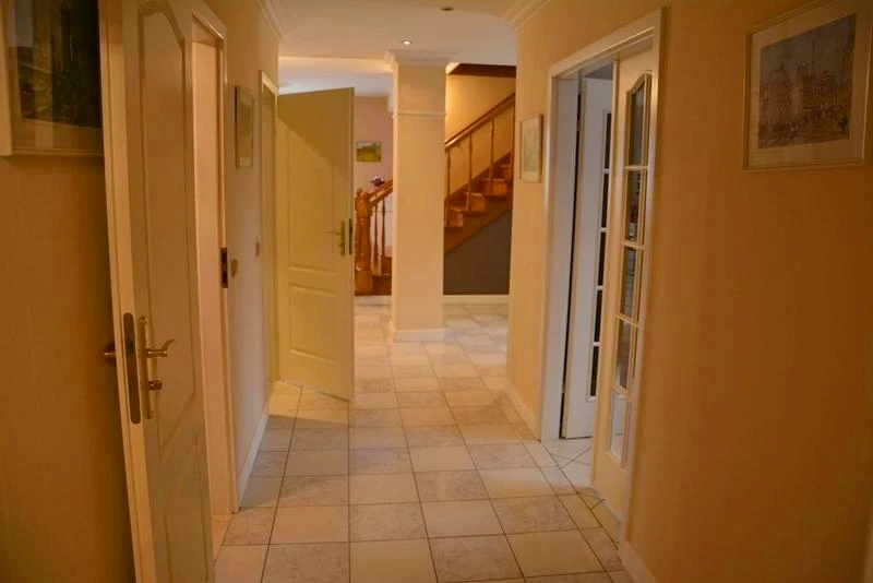 Im gesamten Haus wurden nur hochwertige Materialien verwendet: Edle Fliesen und Paneele, geglättete und gestrichene Wände sowie dekorative Tapeten sorgen für ein stilvolles Ambiente. Die solide Eichenholztreppe unterstreicht den eleganten Charakter des Hauses.