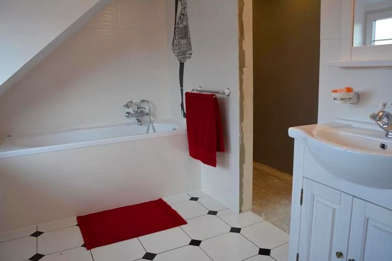 Badezimmerausstattung: Badewanne, Dusche, WC, Handtuchheizkörper