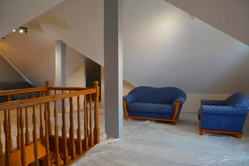 Im Obergeschoss erwarten Sie drei gemütliche Schlafzimmer, ein großzügiger, offen gestalteter Raum mit Zugang zu einem Balkon, ein Badezimmer mit Badewanne sowie eine praktische Ankleide. Einer der Schlafzimmer verfügt über einen zusätzlichen eigenen Balkon.