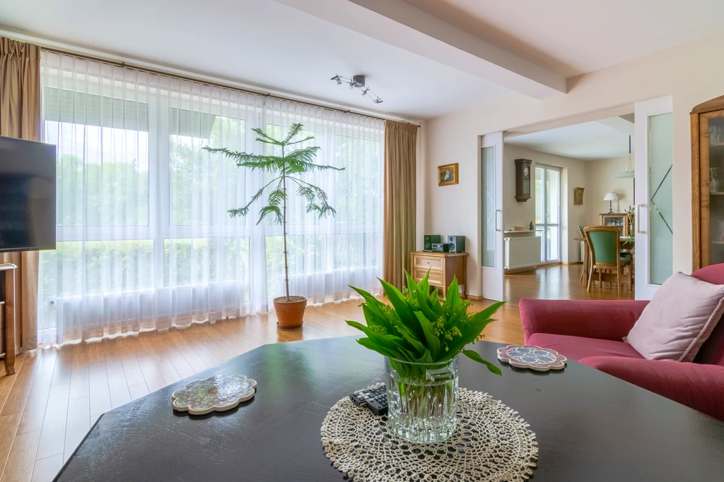 Dieses gepflegte, freistehende Einfamilienhaus mit einer Gesamtfläche von 288,5 m² befindet sich auf einem ebenen, rechteckigen Grundstück von 1.984 m² im malerischen Stadtteil Dąbie auf der rechten Oderseite Szczecins. Die ruhige Lage mitten im Grünen – nur wenige Minuten vom Dąbie-Waldpark entfernt – bietet eine einzigartige Kombination aus naturnahem Wohnen und schneller Erreichbarkeit der Innenstadt (ca. 10–15 Minuten Fahrt).