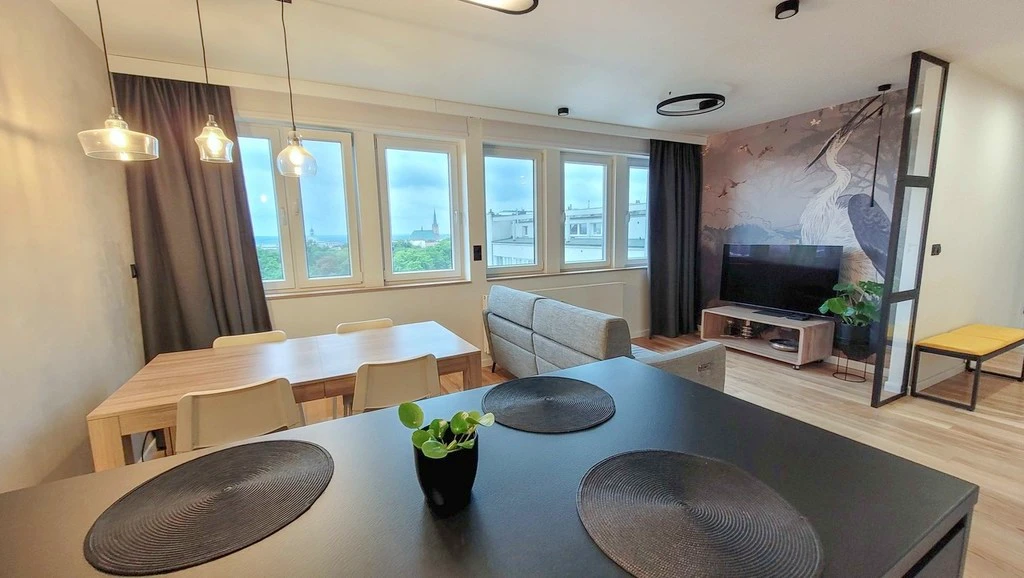 - Atemberaubende Aussicht: Große, südlich ausgerichtete Fenster durchfluten die Räume mit Tageslicht und eröffnen einen eindrucksvollen Blick auf die Stadt, darunter die Chrobry-Wälle, die Philharmonie und das Schloss der Pommerschen Herzöge.