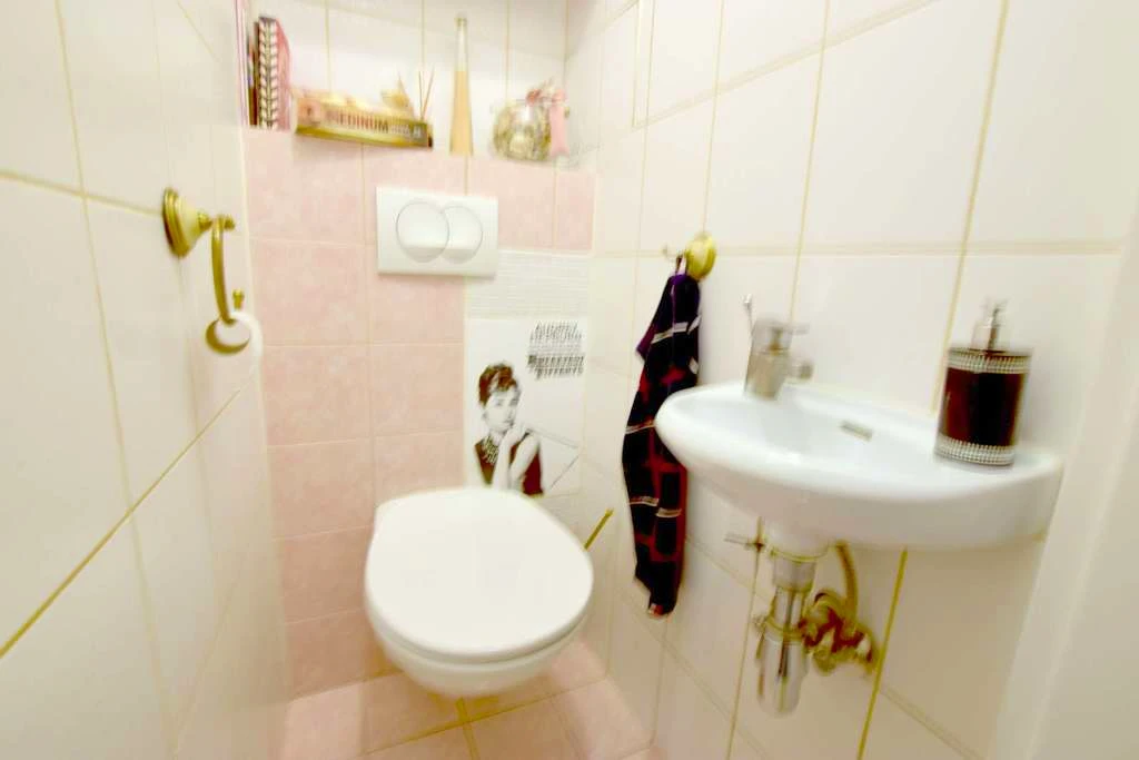 Im Preis inbegriffen ist die maßgefertigte Kücheneinrichtung (ohne Elektrogeräte) sowie ein Einbauschrank vom Typ „Komandor“ im Flur – ideal zur Aufbewahrung. Auf Wunsch können einige freistehende Möbelstücke ebenfalls in der Wohnung verbleiben.