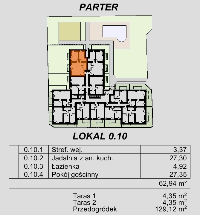 Das angebotene Apartment befindet sich im Erdgeschoss und verfügt über eine großzügige Wohnfläche von 62,94 m². Es besteht aus: