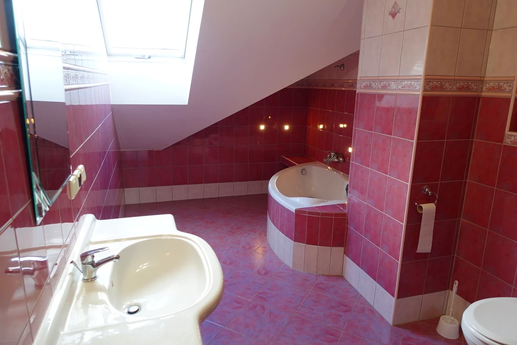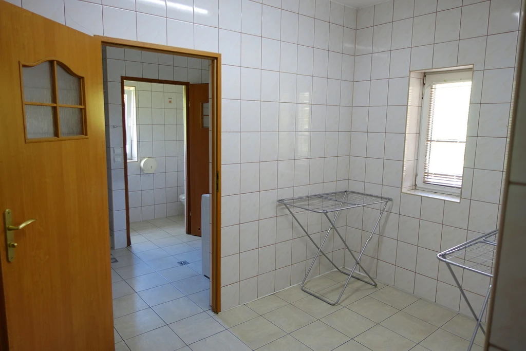 - Ausstattung: Fenster, Waschmaschine, WC, Waschbecken, Dusche, Badewanne