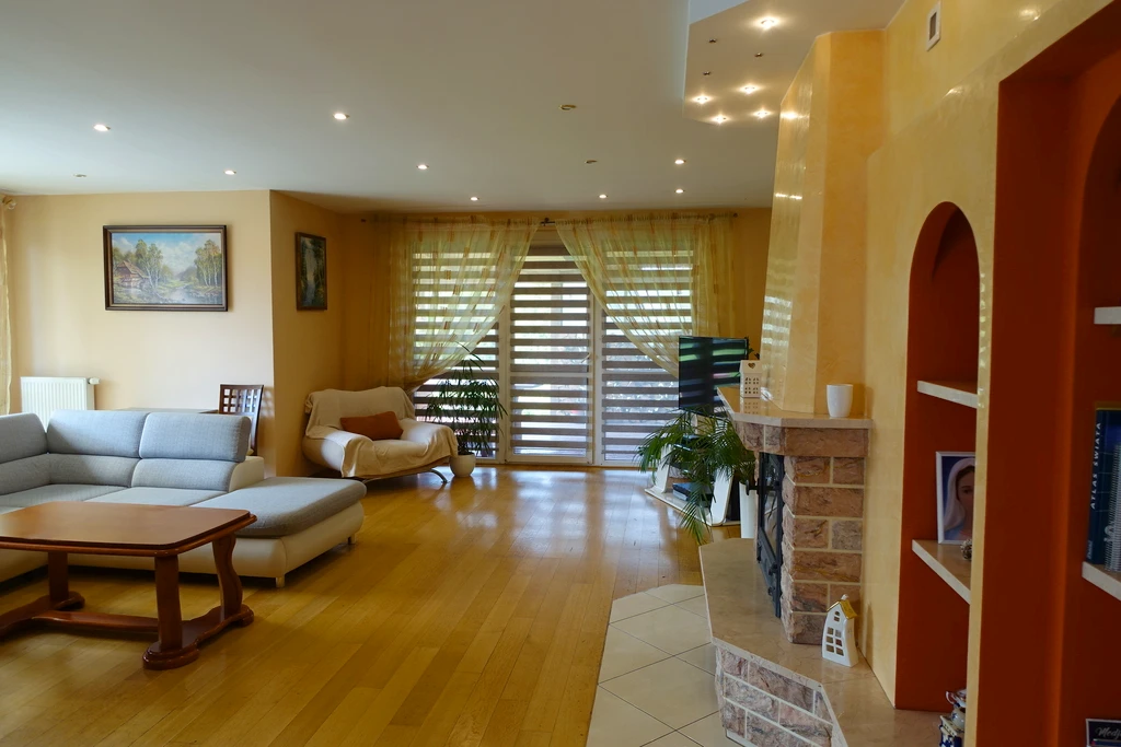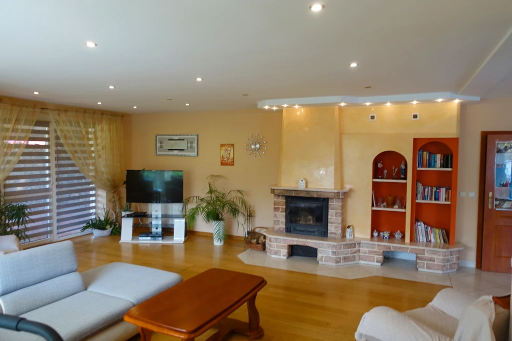 Willkommen in Ihrem neuen Zuhause in Chojna! Dieses freistehende, zweigeschossige Wohnhaus mit ausgebautem Dachgeschoss bietet Ihnen auf insgesamt 641,5 m² eine einmalige Kombination aus stilvollem Wohnen, vielseitigem Nutzen und ruhiger Lage. Das 2004 erbaute Gebäude befindet sich auf einem 1.503 m² großen, unregelmäßig geschnittenen Grundstück und befindet sich in einem sehr guten Zustand.