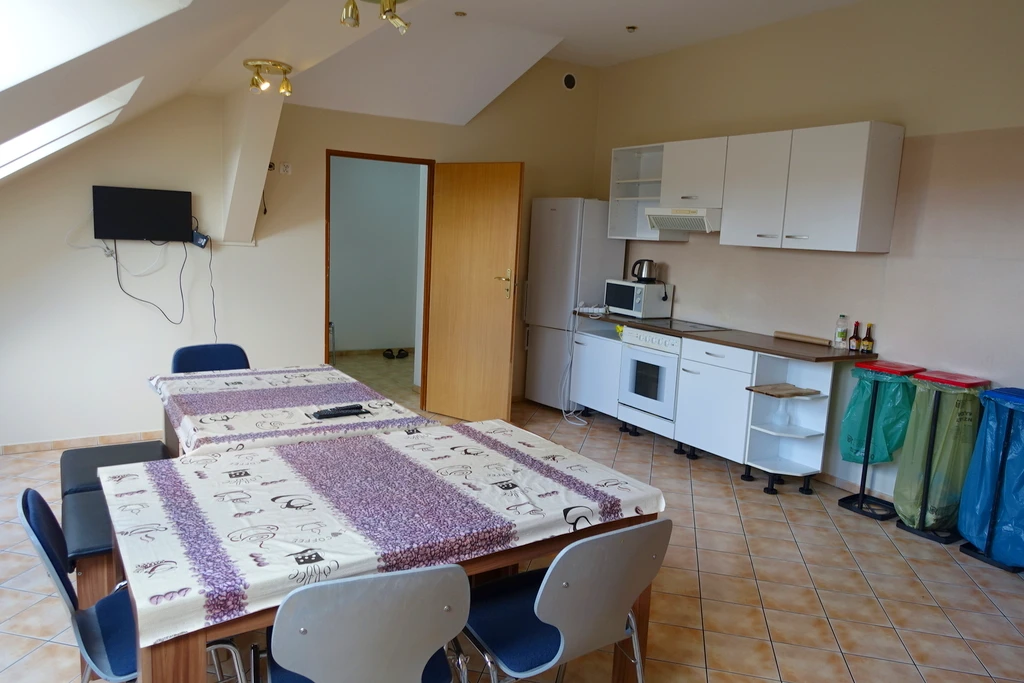 - Ausstattung: Kühlschrank, Geschirrspüler, Mikrowelle, Gasherd
