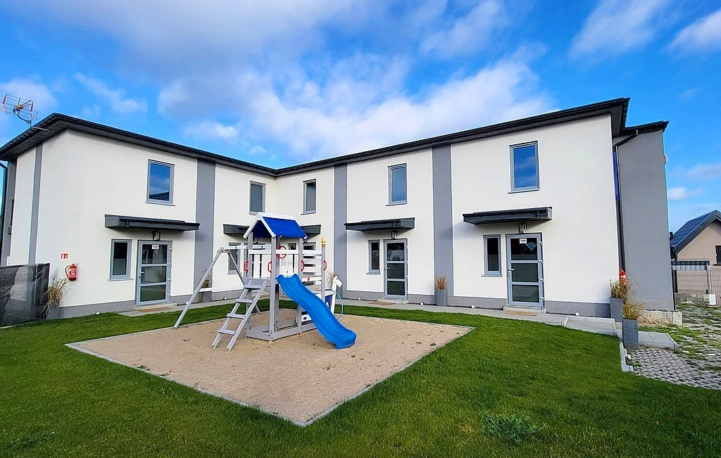 Zum Verkauf steht ein im Jahr 2023 neu errichteter, moderner Ferienhauskomplex mit einer Gesamtfläche von ca. 190 m² auf einem ca. 1.043 m² großen, gepflegten Grundstück. Die Anlage besteht aus fünf zweigeschossigen Reihenhäuschen, jeweils mit ca. 40 m² Fläche. Jedes Segment bietet Platz für bis zu 6 Personen – in Summe kann die Anlage bis zu 30 Gäste gleichzeitig beherbergen.