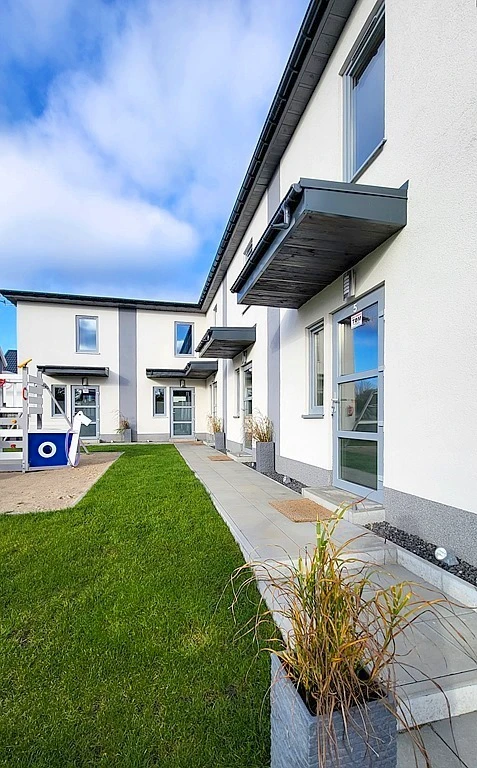 Dieses hochwertig ausgebaute Reihenhaus befindet sich in einer attraktiven Lage mit flachem Gelände und rechteckigem Grundstück. Die Immobilie wurde 2023 mit großer Sorgfalt aus langlebigem Holzmaterial errichtet und befindet sich in einem idealen Zustand – bezugsfertig ab dem 19. November 2023.