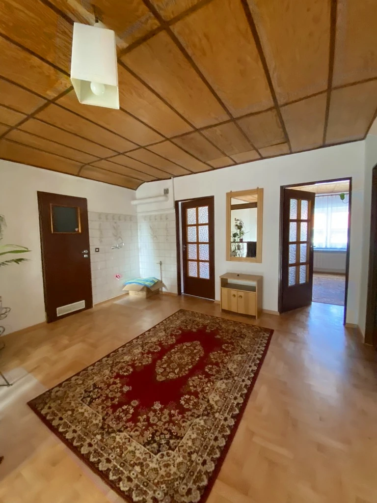 Angeschlossen an das Haus befindet sich eine großzügige Halle von ca. 110 m² mit einer Deckenhöhe von etwa 5 m. Die Halle ist aktuell vermietet und stellt eine stabile Einnahmequelle dar. Zusätzlich generiert die Einliegerwohnung weitere Erträge. Das monatliche Einkommen bietet Potenzial zur Steigerung.