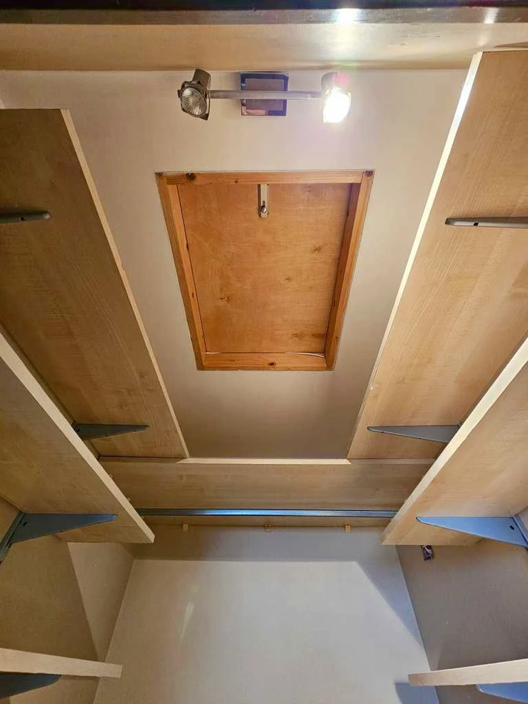 Besonders hervorzuheben ist der große Dachboden oberhalb der zweiten Etage. Dieser wurde mit einem stabilen OSB-Boden ausgestattet und lässt sich ideal als Abstellfläche oder für zukünftige Aus- und Umbauten (z. B. offene Galerie) nutzen. Der Zugang erfolgt über eine Öffnung im begehbaren Kleiderschrank.