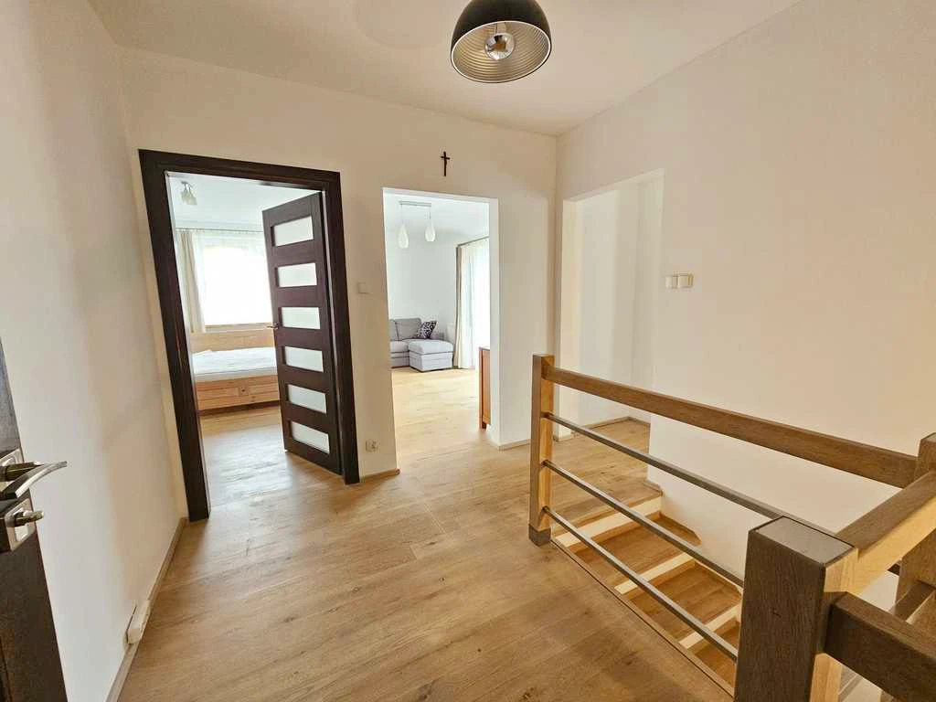 Willkommen in Ihrem neuen Zuhause – einer charmanten, zweigeschossigen Wohnung in einem massiven Ziegelhaus aus dem Jahr 2007, gelegen in einer gepflegten und geschlossenen Wohnanlage im beliebten Stadtteil Bezrzecze. Die ruhige Lage am Waldrand inmitten von Spazierwegen und Grünflächen bietet ideale Bedingungen für Familien sowie Investoren.
