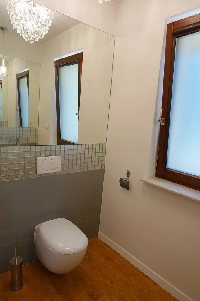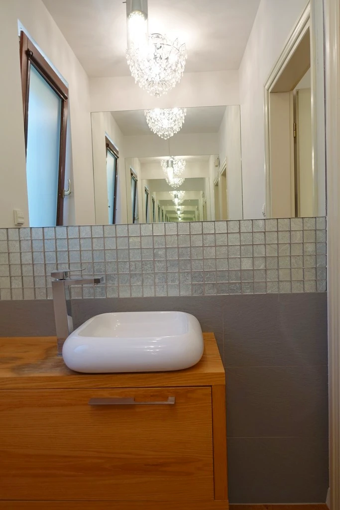 Ausstattung Badezimmer: WC, Waschbecken, Badewanne, Dusche, Fenster, Bidet