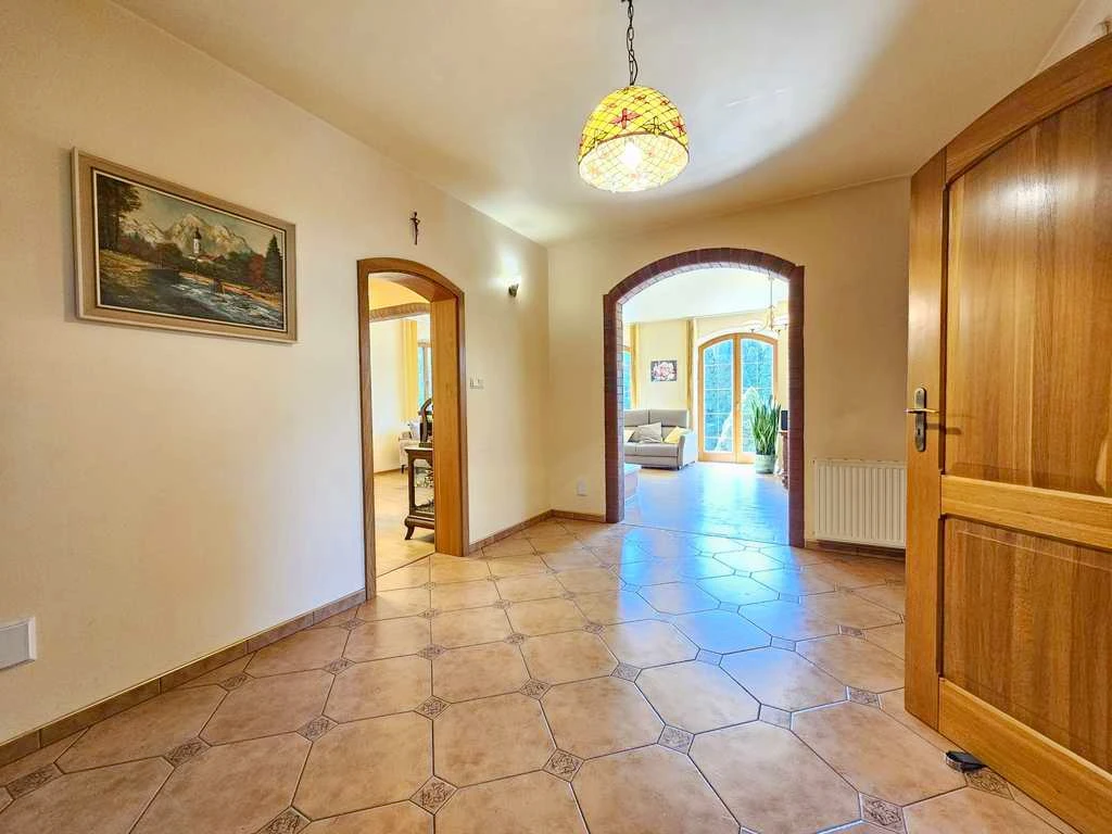 Willkommen in diesem charmanten, freistehenden Einfamilienhaus mit insgesamt ca. 350 m² Fläche (davon etwa 300,5 m² Wohnfläche), gelegen auf einem gepflegten Grundstück von 693 m² in ruhiger Lage auf dem Oberen Plateau von Gryfino. Das Haus wurde 2003 in solider Massivbauweise (Ziegelmauerwerk mit Mineralwolldämmung) erbaut und befindet sich in einem sehr guten Zustand. Dank seines durchdachten Grundrisses eignet es sich hervorragend für eine große Familie oder auch als Mehrgenerationenhaus – mit der Möglichkeit zur Teilnutzung als Büro oder Praxis.