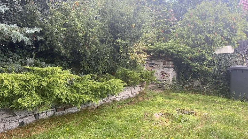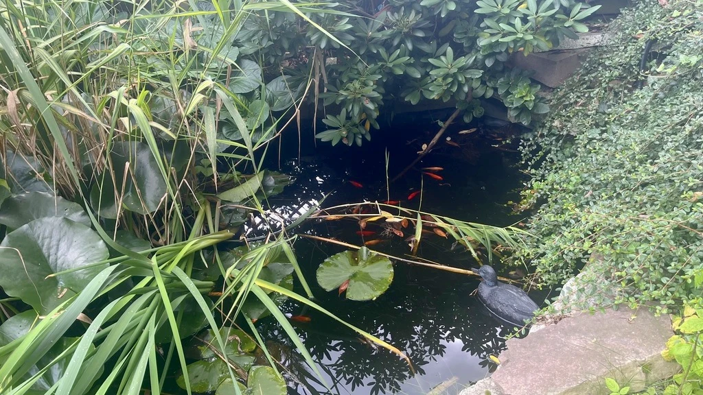 Die Immobilie liegt auf einem schön angelegten Grundstück mit einem charmanten, kaskadenartigen Gelände, das viel Privatsphäre garantiert. Der Garten begeistert mit einem liebevoll angelegten Teich voller Fische und üppigem Grün – ein kleines Paradies zum Entspannen und Genießen.