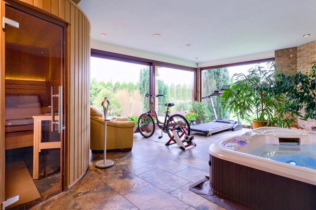 - Wellness- und Spa-Bereich mit Sauna, Whirlpool, Fitnessfläche und direktem Gartenzugang
