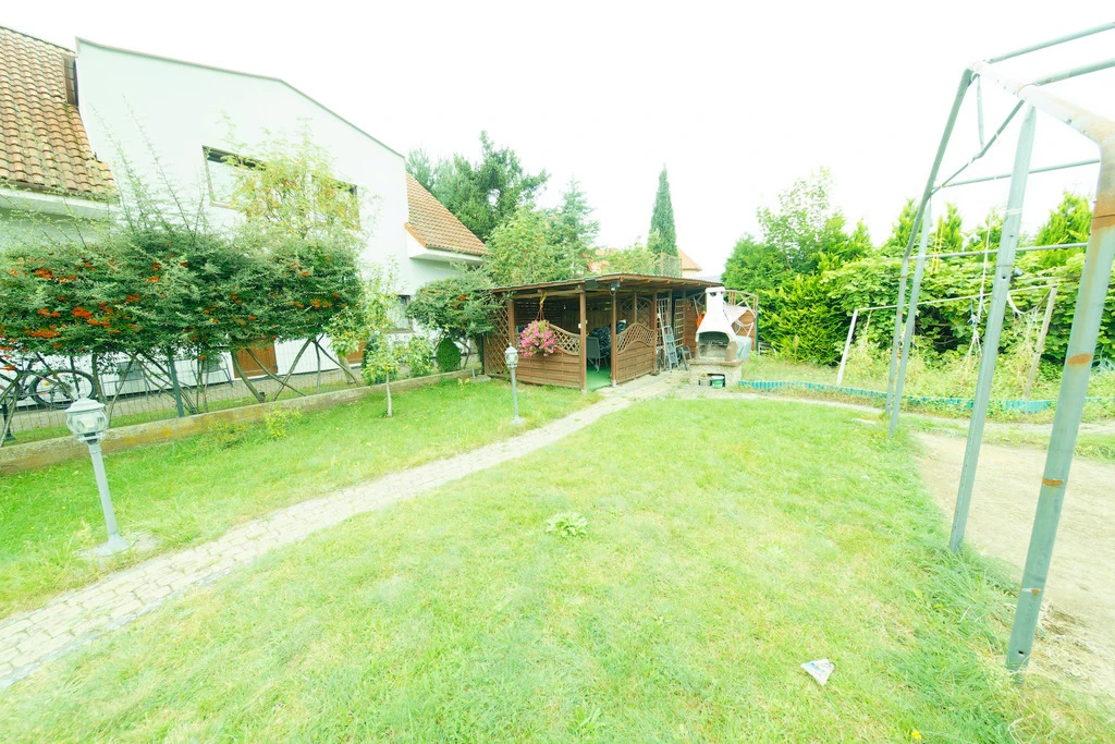 Das großzügige Grundstück ist liebevoll angelegt – mit Rasenflächen, Blumenbeeten und gepflasterten Wegen. Eine gemütliche Gartenlaube mit Grillplatz sowie ein kleiner Spielplatz laden zum Verweilen ein. Für Ihre Gäste stehen auf dem Grundstück vier separate, gekennzeichnete Parkplätze zur Verfügung.
