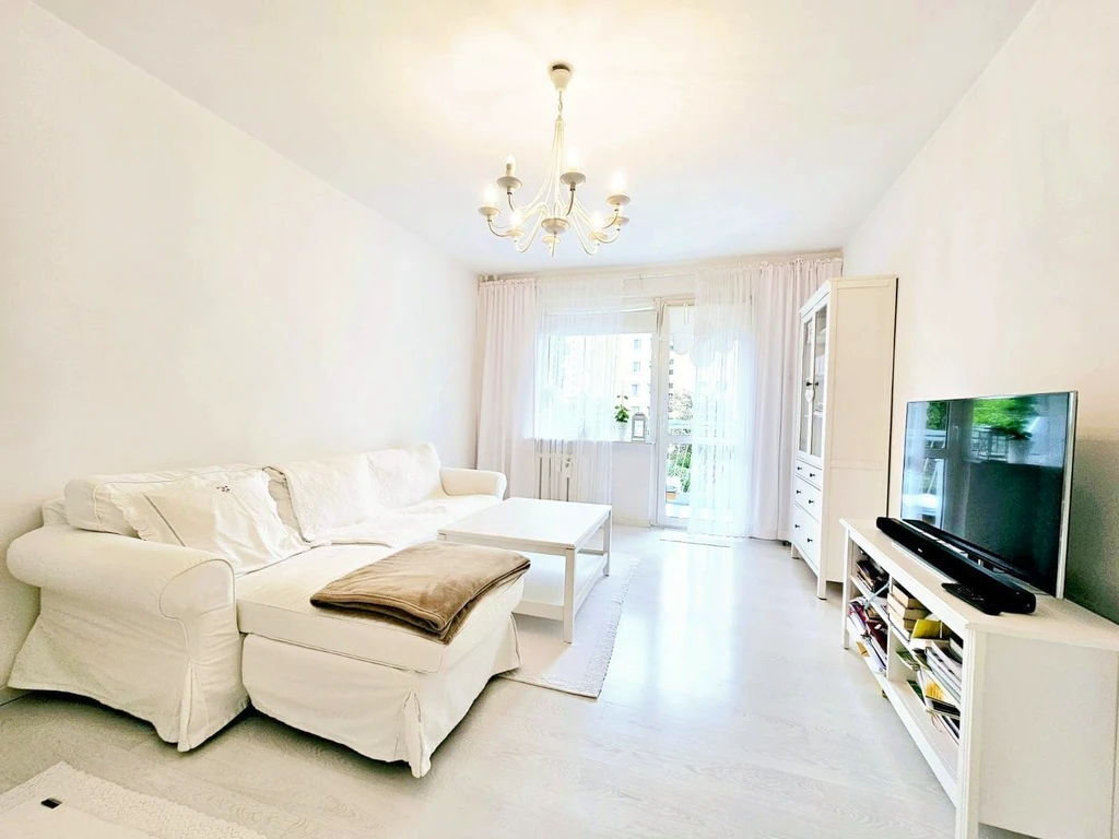 - Wohnzimmer mit Zugang zu einem geräumigen Balkon, ideal für entspannte Stunden im Freien