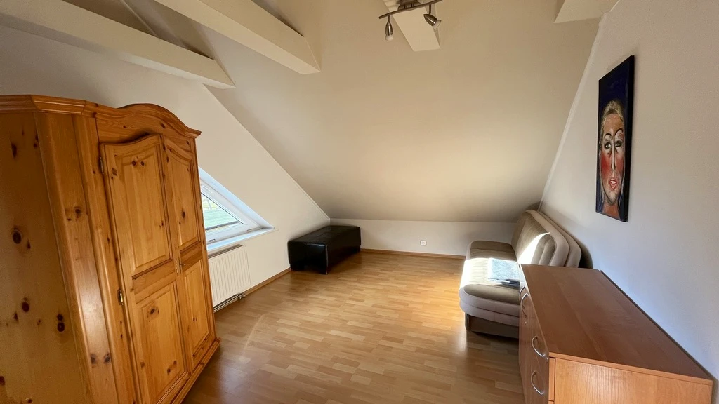 Im ausgebauten Dachgeschoss befinden sich zwei weitere Schlafzimmer sowie ein zweites Badezimmer mit Dusche – ideal für Familien oder Gäste.