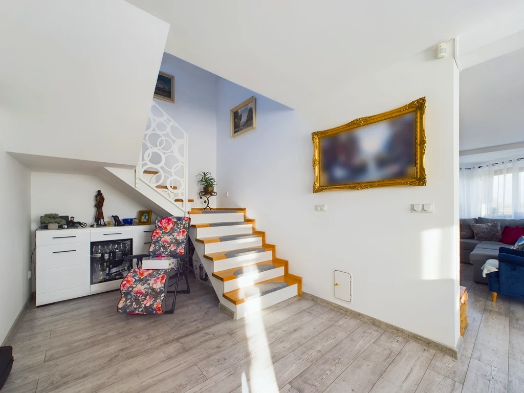 Die Kombination aus modernen Kunststofffenstern, hochwertigen Bodenbelägen (Fliesen und Laminat), und soliden Baumaterialien (Steinblockwände, Ziegeldach) verleiht dem Haus eine angenehme Wohnqualität.