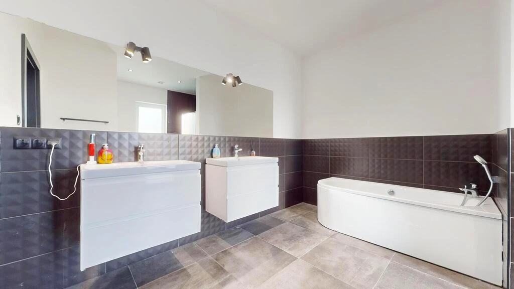 - Hauptschlafzimmer mit begehbarem Kleiderschrank und eigenem Badezimmer mit Badewanne, Dusche und WC – Ihre private Wellness-Oase
