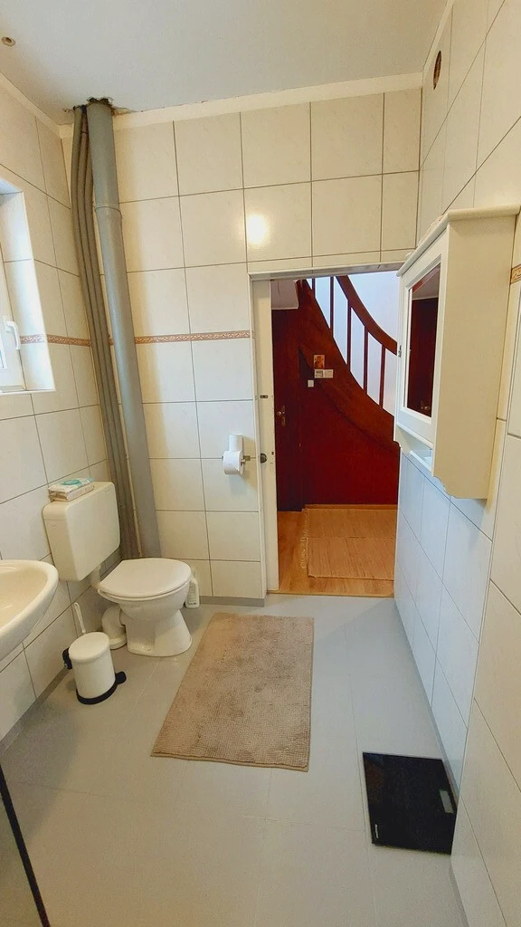 Hier befinden sich drei weitere Schlafzimmer, eine zweite, kleine Küche, ein Badezimmer sowie ein zusätzliches WC. Die hochwertigen Holztreppen verleihen dem Haus ein warmes Ambiente.
