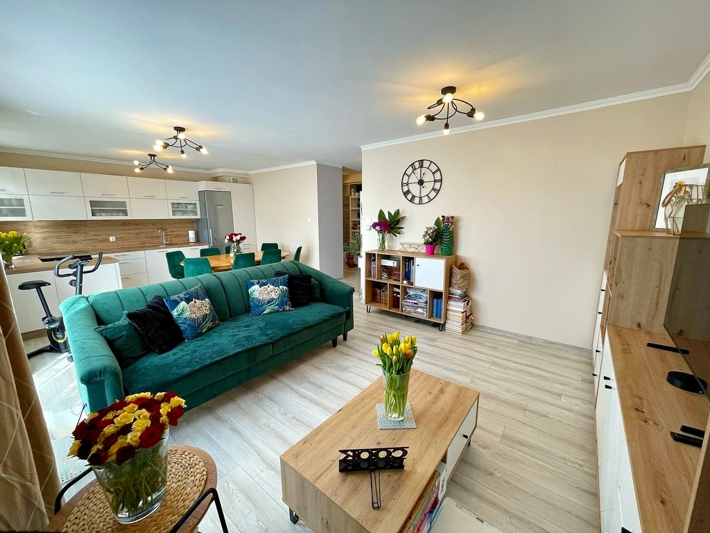 Diese großzügige und gepflegte Wohnung befindet sich in einem modernen Apartmenthaus im Stadtteil Drzetowo. Die Gesamtwohnfläche von 111,6 m² bietet komfortables Wohnen für die ganze Familie.
