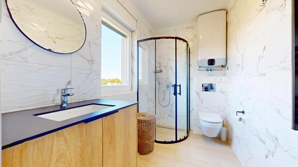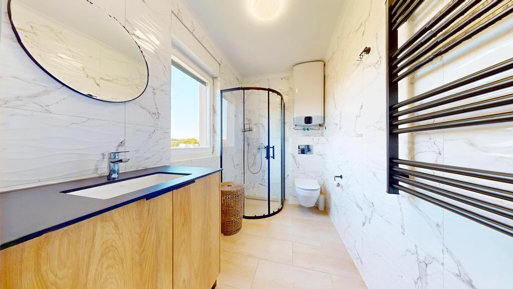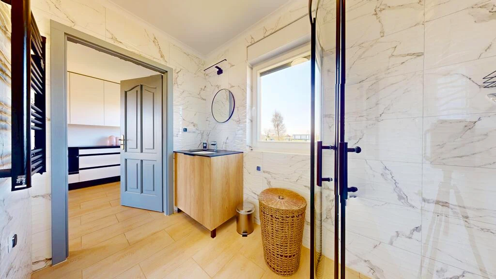 - Großzügiges Badezimmer mit Duschkabine