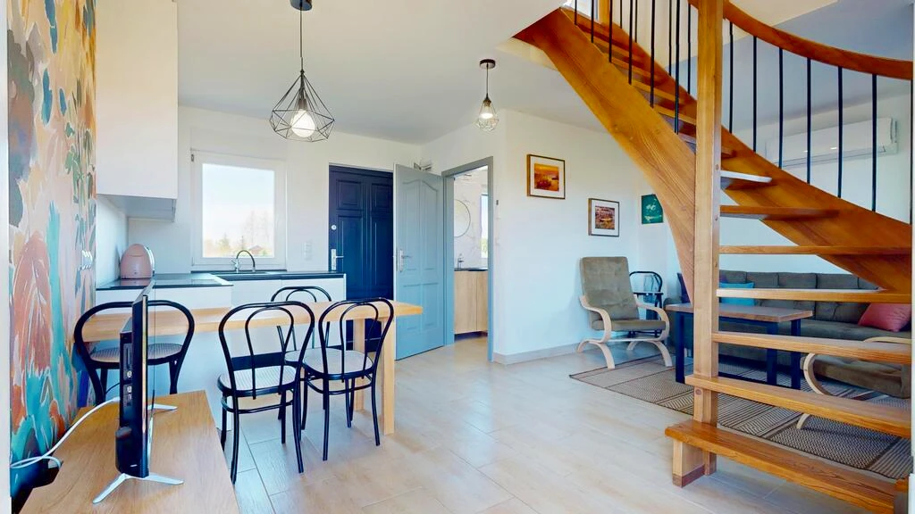 Mit einer Gesamtfläche von 95,08 m², davon 73,20 m² Nutzfläche, eignet sich das Haus perfekt für Familien oder Menschen, die Erholung abseits vom Stadttrubel suchen. Es bietet alles, was Sie für einen komfortablen Aufenthalt benötigen: zwei helle Badezimmer, großzügige und funktionale Räume sowie einen durchdachten Grundriss auf einer Ebene – ideal für alle Altersgruppen.