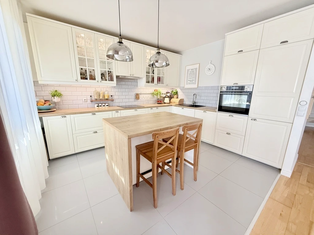 - Hochwertige Einbauküche mit Geschirrspüler, Dampfbackofen, Induktionskochfeld, Dunstabzugshaube und Kühlschrank