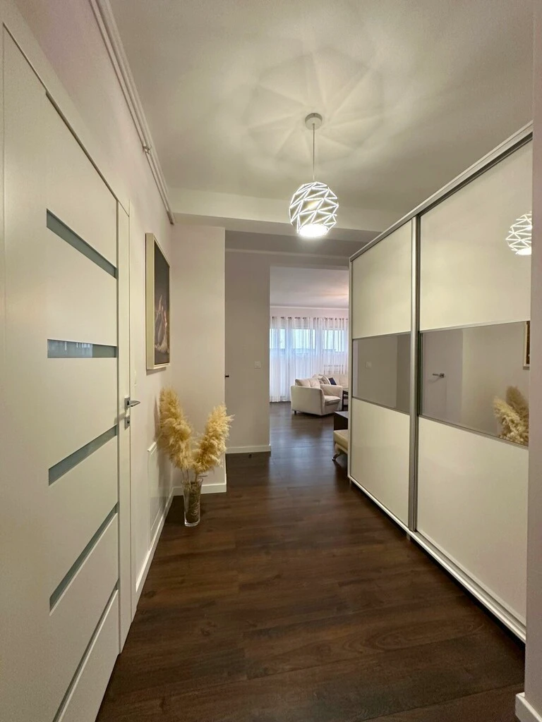 Dieses hochwertig ausgestattete Apartment überzeugt durch stilvolles Design, großzügige Raumaufteilung und eine exklusive Ausstattung. Die Kombination aus hellen Elementen, wie der eleganten weißen Einbauküche mit schwarzen Steinarbeitsplatten, hochwertigem Bodenbelag und einem modernen Badezimmer verleiht dem Zuhause ein einzigartiges Ambiente mit einem Hauch von Luxus.