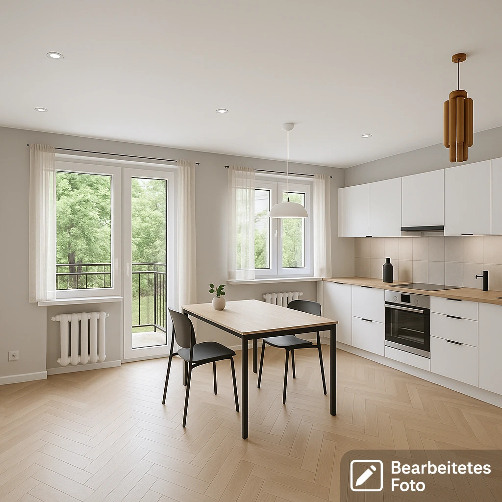 - Das erste Foto in unserer Galerie wurde leicht bearbeitet, um zu veranschaulichen, wie die Wohnung aussehen könnte – beispielsweise durch eine geänderte Wandfarbe. Die nachfolgenden Bilder zeigen den tatsächlichen Zustand der Immobilie.