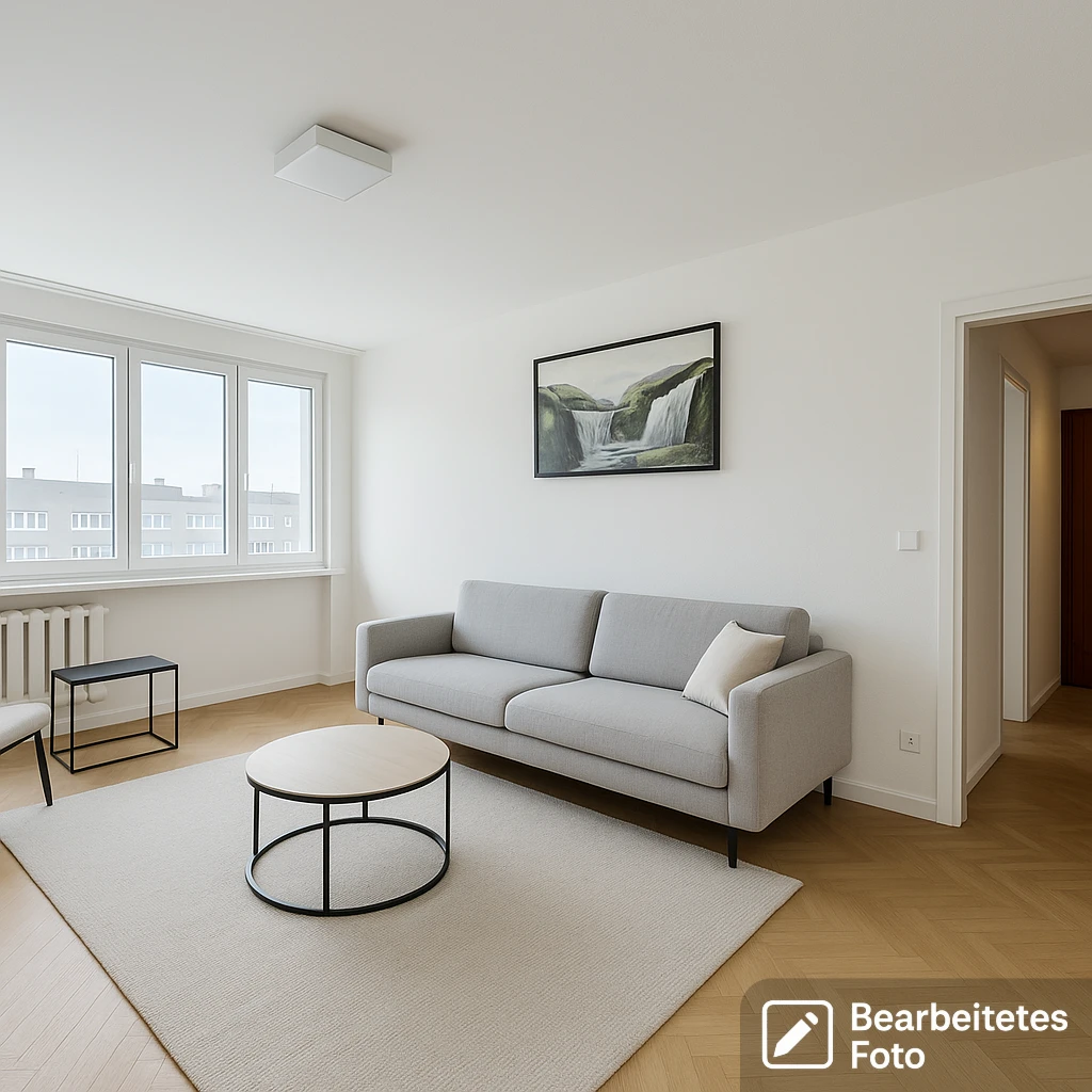 - Das erste Foto in unserer Galerie wurde leicht bearbeitet, um zu veranschaulichen, wie die Wohnung aussehen könnte – beispielsweise durch eine geänderte Wandfarbe. Die nachfolgenden Bilder zeigen den tatsächlichen Zustand der Immobilie.