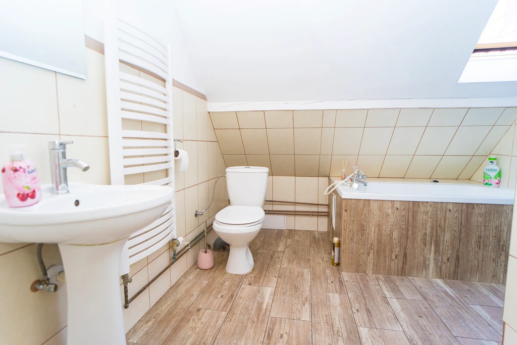 Besonderheiten: Das Badezimmer verfügt sowohl über eine Badewanne als auch über eine Dusche – ideal für Familien und Paare. Im Wohnzimmer wurde eine Klimaanlage installiert, die über den Schornsteinanschluss betrieben wird.