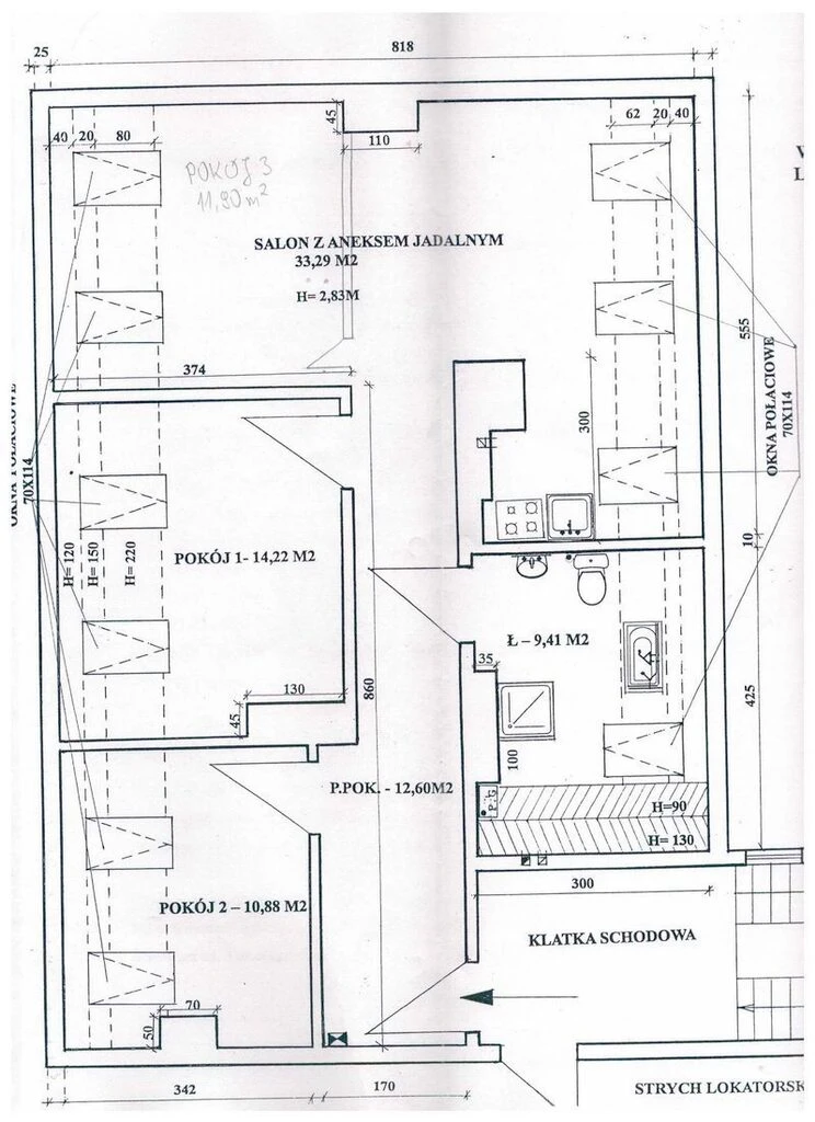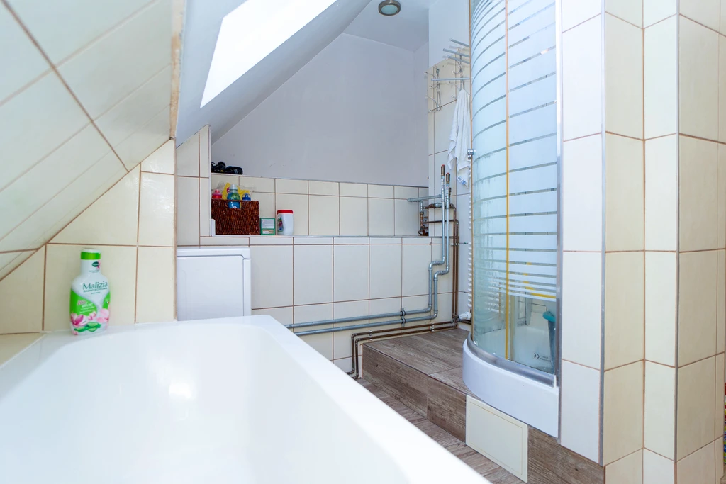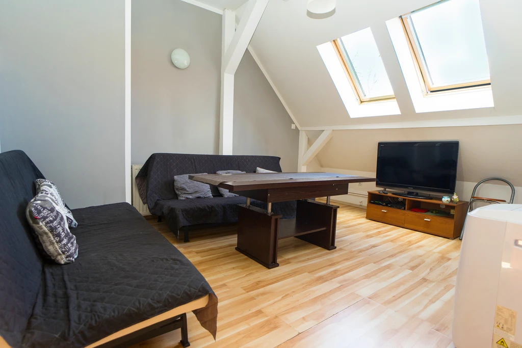 Wir präsentieren Ihnen eine charmante 4-Zimmer-Dachgeschosswohnung mit einer Gesamtfläche von ca. 100 m² (ca. 80 m² Wohnfläche) in einem renovierten Altbau, gelegen im beliebten Stadtteil Niebuszewo – nur wenige Minuten von den Grünanlagen Jasne Błonia entfernt.