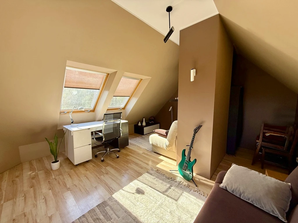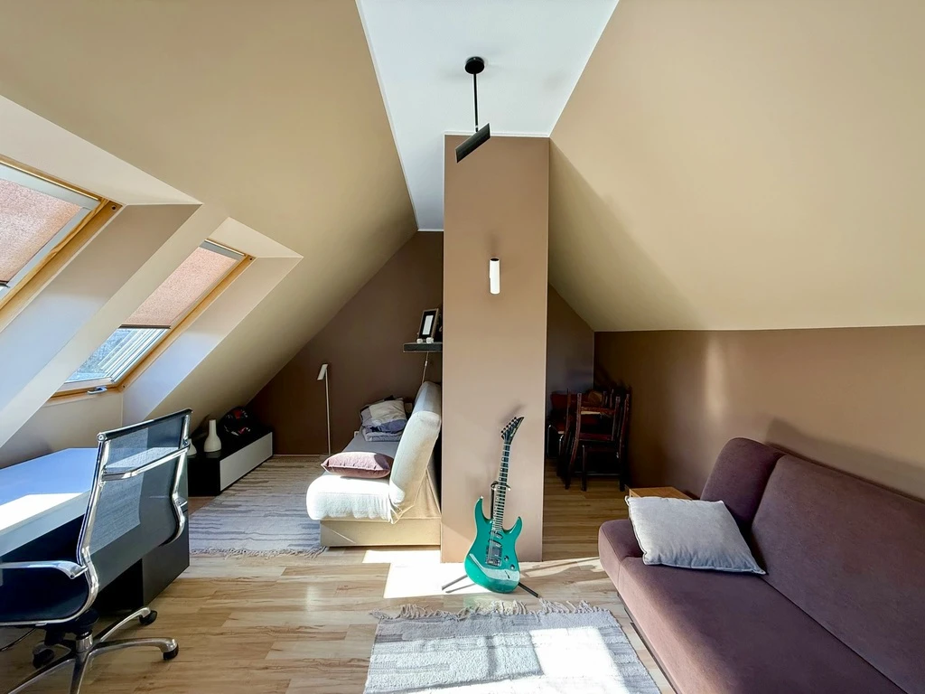 - Großes, offen gestaltetes Zimmer, vielfältig nutzbar (z. B. als Arbeits-, Gäste- oder Kinderzimmer)