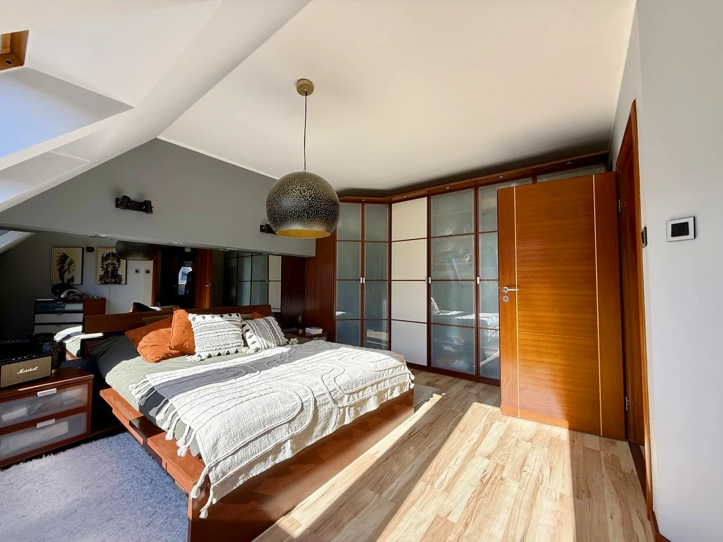 - Großzügiges Schlafzimmer mit maßgefertigtem Einbauschrank