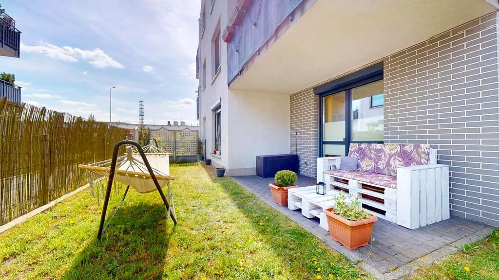 Stettin: Moderne 2-Zimmer-Gartenwohnung mit Terrasse in ruhiger Wohnanlage