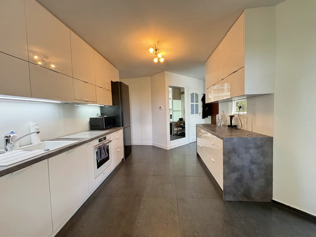 Die separate Küche mit Fenster ist mit allen notwendigen Geräten wie Kühlschrank, Backofen und Geschirrspüler ausgestattet. Das Badezimmer besticht durch hohe Ausstattung mit Dusche, Bidet, Fenster, modernem Heizkörper und WC.