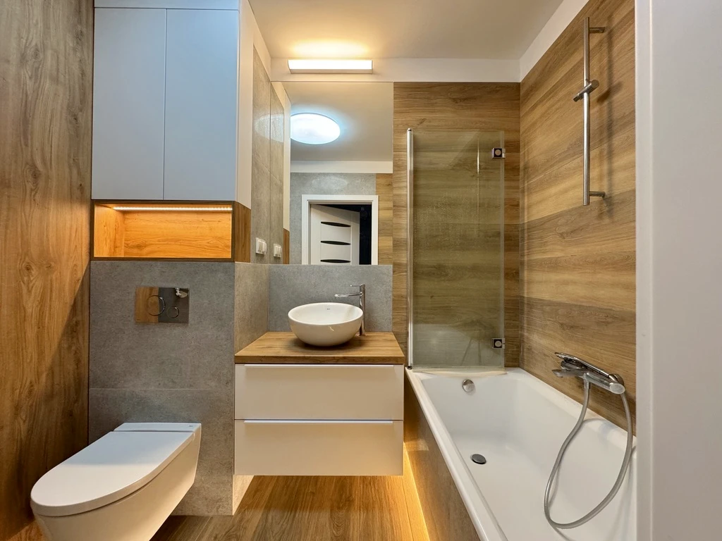 Lage: Die Wohnung befindet sich in ruhiger und dennoch gut angebundener Lage. Die Zufahrtsstraße zum Wohnviertel wird derzeit modernisiert. In unmittelbarer Nähe befindet sich die malerische Wkrzanska-Waldlandschaft (Puszcza Wkrzańska), die ideal für Spaziergänge, Radfahren und Freizeitaktivitäten im Grünen ist. Zudem gibt es zahlreiche Spielplätze sowie weitere Grünflächen in der Umgebung – ein perfektes Wohnumfeld für Familien.