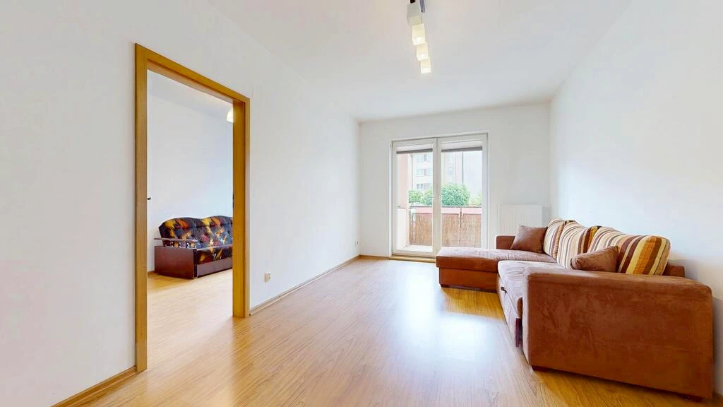 Das Wohnzimmer bietet direkten Zugang sowohl zum Balkon als auch zu einem der Schlafzimmer – dies schafft eine besonders komfortable Wohnstruktur.
