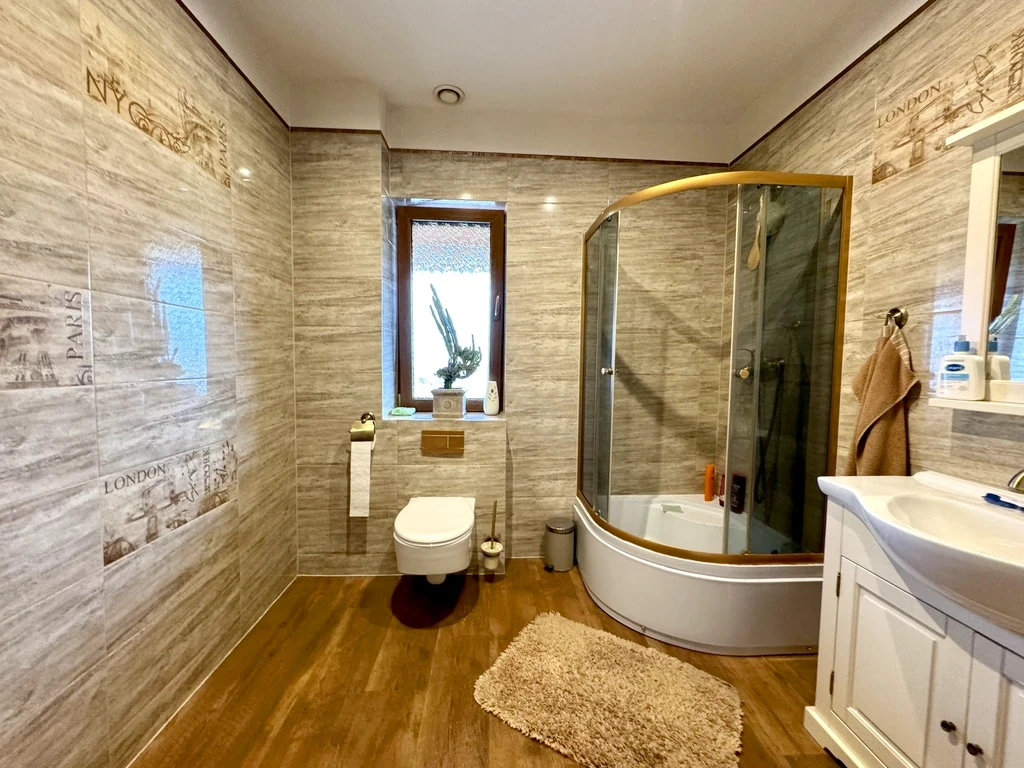 Zusätzliche Ausstattung: - Separates Apartment innerhalb des Gebäudes (83 m²) mit: - Wohnzimmer mit Küche - 2 Schlafzimmern - Badezimmer - Flur - Beheizt durch Fußbodenheizung (Wärmepumpe) - Gepflasterte Terrasse im Westen - Überdachte Halle mit knapp 100 m² Fläche - Photovoltaikanlage auf dem Dach mit 24 kW Leistung - Umzäuntes Grundstück mit Videoüberwachung aller Hauptbereiche