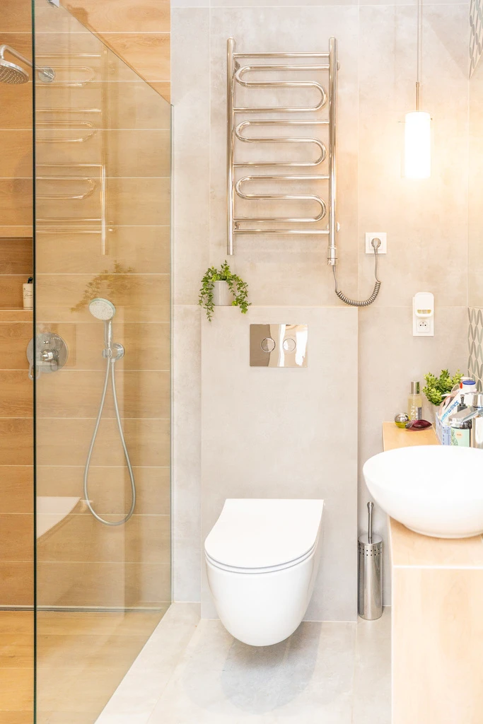 - Badezimmer mit Walk-in-Dusche und WC