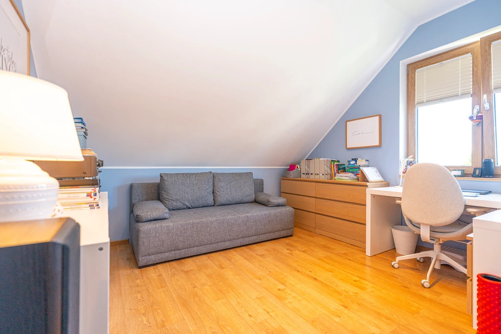 Das Haus liegt in einer familienfreundlichen und ruhigen Wohngegend von Dobra, umgeben von Natur und Spazierwegen. Gleichzeitig erreichen Sie das Stadtzentrum von Stettin bequem mit dem Auto oder öffentlichen Verkehrsmitteln. Einkaufsmöglichkeiten, Schulen und Kindergärten befinden sich in der Nähe.