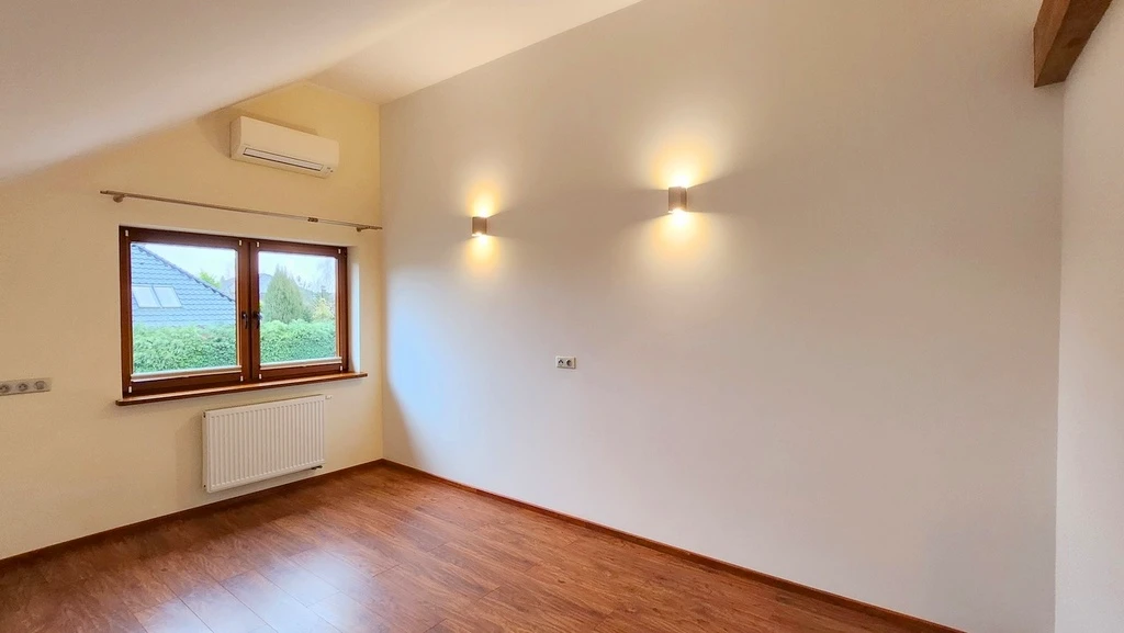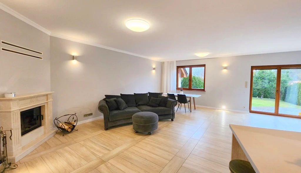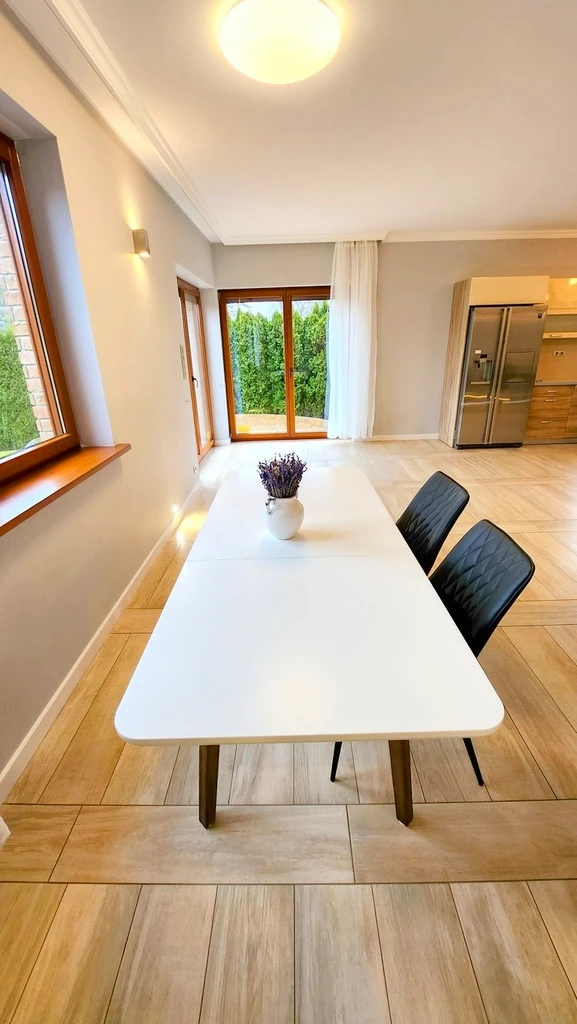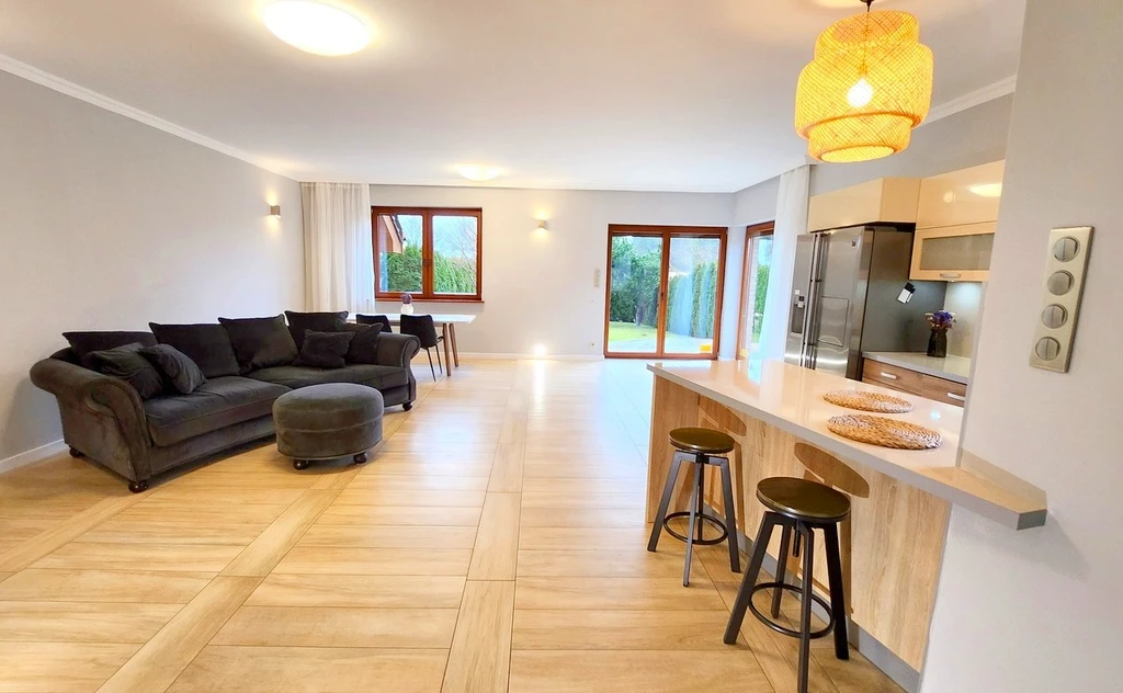 Die Immobilie bietet geräumige Wohnbereiche und ist funktional aufgeteilt. Es gibt zwei moderne Badezimmer, eine offene Küche mit einem praktischen Küchenbereich sowie lichtdurchflutete Räume mit hochwertigen Holzfenstern. Das Haus ist eingeschossig (einschließlich Erdgeschoss).