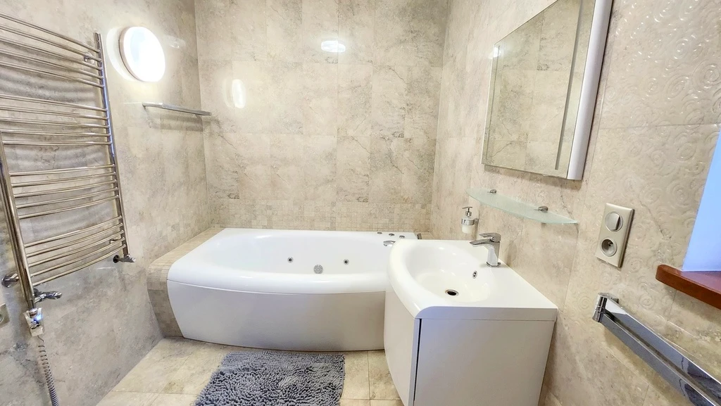 - Großes Badezimmer mit Badewanne und Hydromassage-Funktion