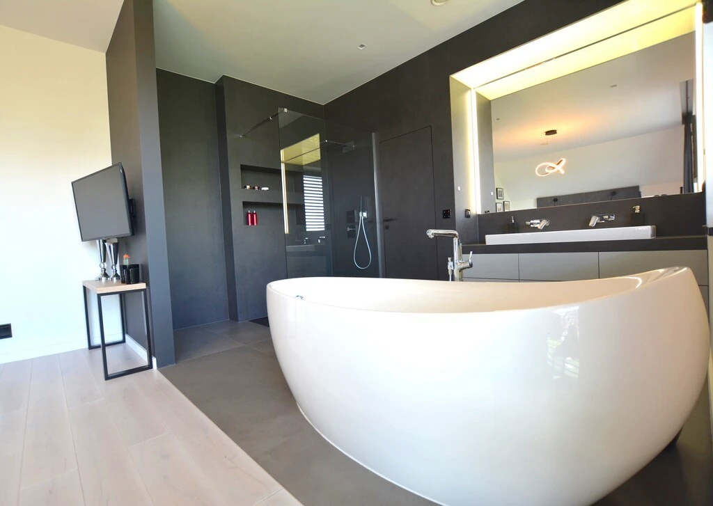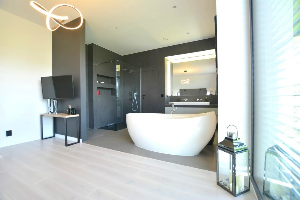 - Hochwertige Materialien: Duschwände, Treppen und Arbeitsflächen mit Quarzkomposit