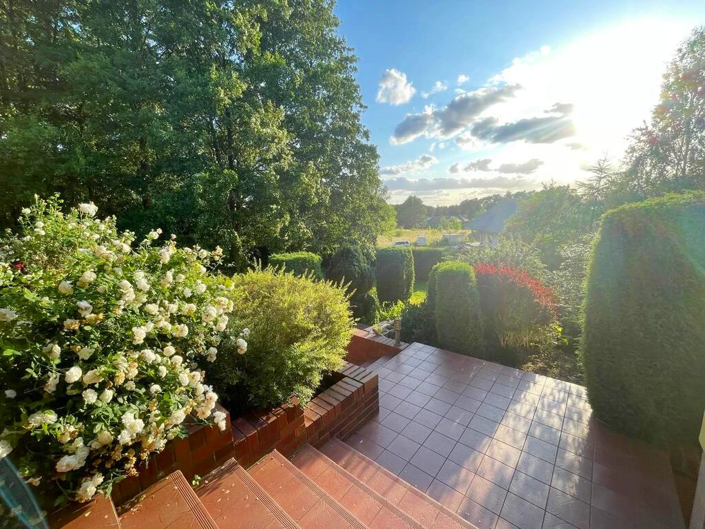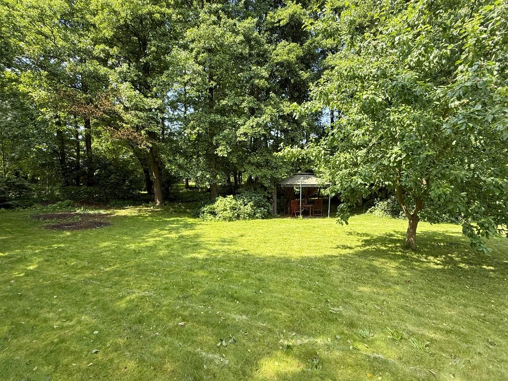 Das weitläufige Grundstück ist eine wahre Oase der Ruhe. Der gepflegte Garten beeindruckt mit altem Baumbestand, liebevoll gepflegten Beeten und zahlreichen Rückzugsorten: