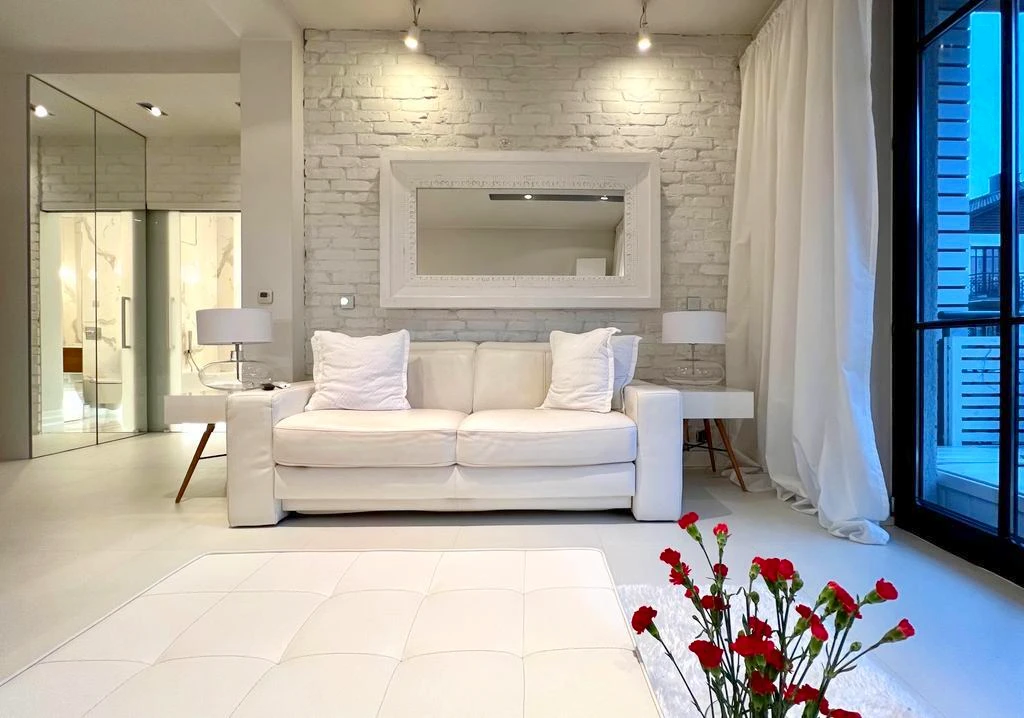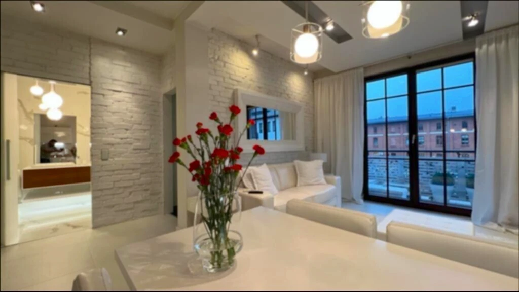 - Hochwertige Materialien: Natursteinwände, elegante Fliesen in Cremefarbe, Teppichboden im Schlafzimmer